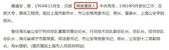 ·上海市公安局官网此前关于龚道安的报道,目前相关消息已无法打开。