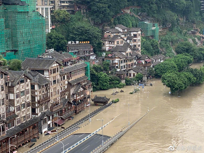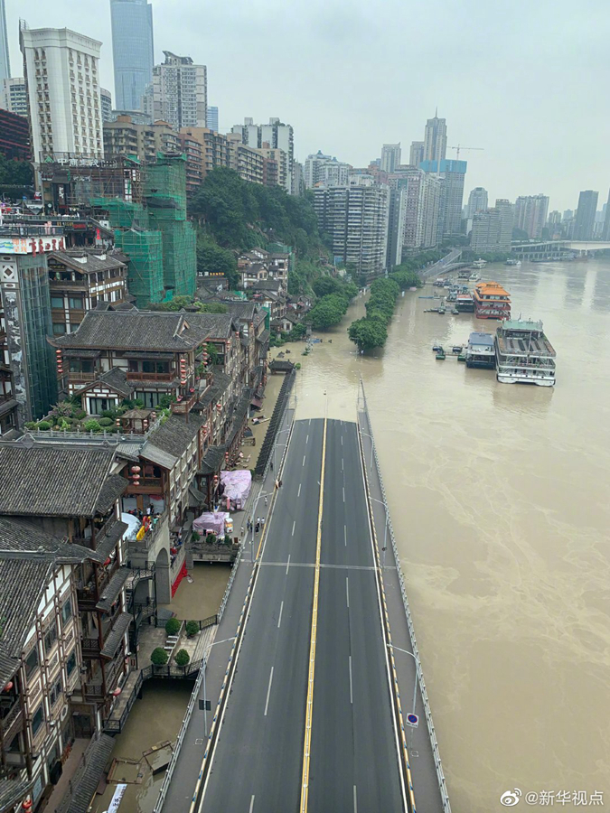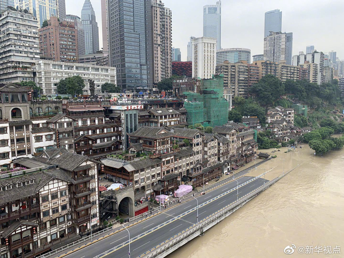 受洪水影响,重庆洪崖洞景区暂停接待游客