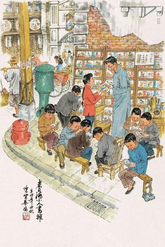 “上海的街头巷尾像步哨似的密布着无数的小书摊。虽说是书摊,实在只是两块在墙上的特制木板,贴膏药似的密排着各种名目的版式一律的小书。”