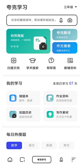 夸克作文搜索,不同文体不同题材,一搜就有写作思路。在线错题本,要点语音速记,错题轻松收集。“帮帮答”则提供专业的一对一在线咨询,解决个性化问题。