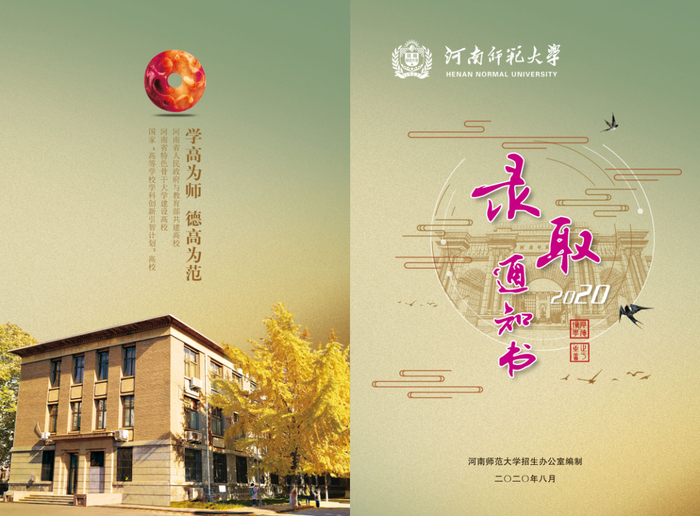 天青色与淡黄色两种颜色的碰撞突出了稳重大方的整体风格,古朴的勤政楼呼应着“厚德博学 止于至善”的师大校训,体现出河南师大浓厚的人文底蕴。