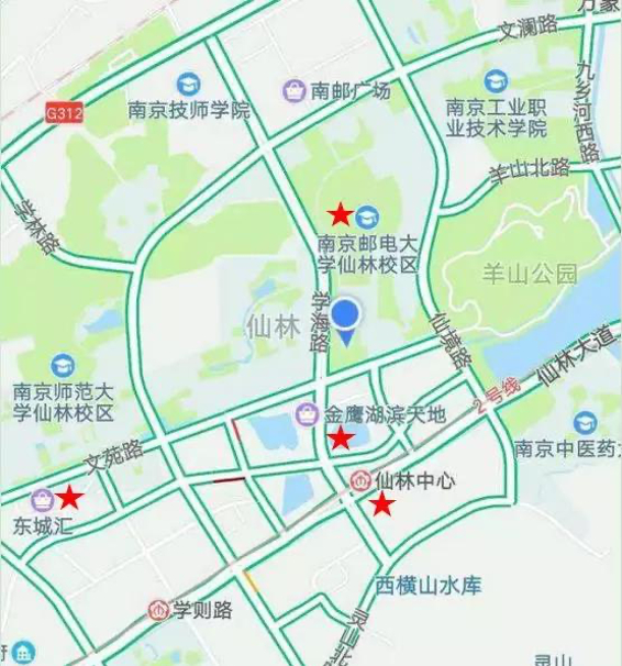 ●换乘地铁2号线【大行宫站】→【仙林中心站】(经天路方向)