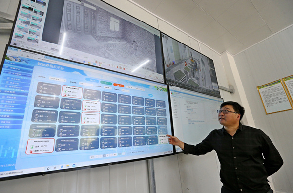 科技人员介绍养蚕“智慧云”平台。 严立政摄