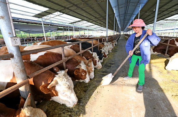 在忻城县思练镇练江村,粤桂扶贫协作项目——“南方牛都”建设如火如荼。肉牛成为主导产业,牛粪回收加工成有机肥用来种植高产牧草皇竹草。皇竹草保土固水能力强,可以有效治理石漠化。脱贫致富与石漠化治理的循环产业链就此串联起来。