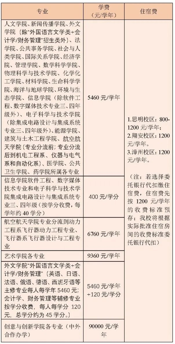 1. 厦门大学翔安校区:电子科学与技术学院、信息学院、航空航天学院、生命科学学院、海洋与地球学院、环境与生态学院、医学院、药学院、公共卫生学院、能源学院的新生报到地点为厦门大学翔安校区;