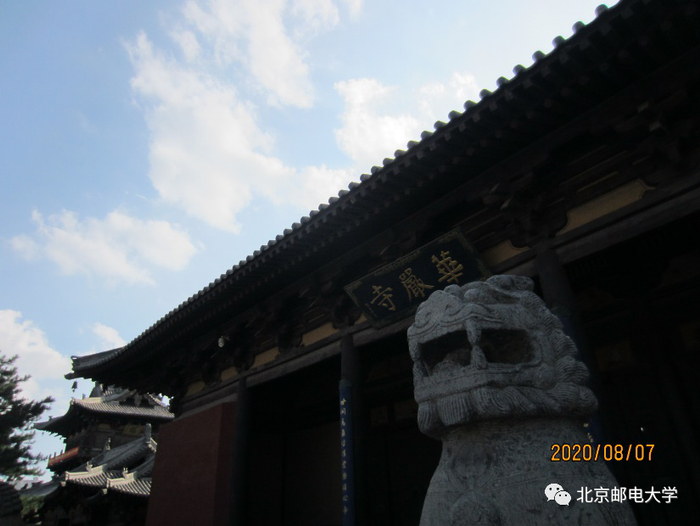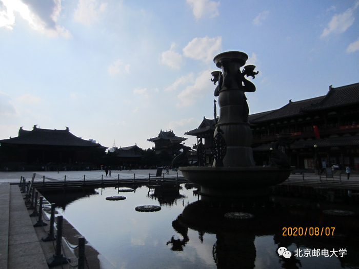 此图摄于华严寺广场。图中央为喷泉,远处为华严寺。