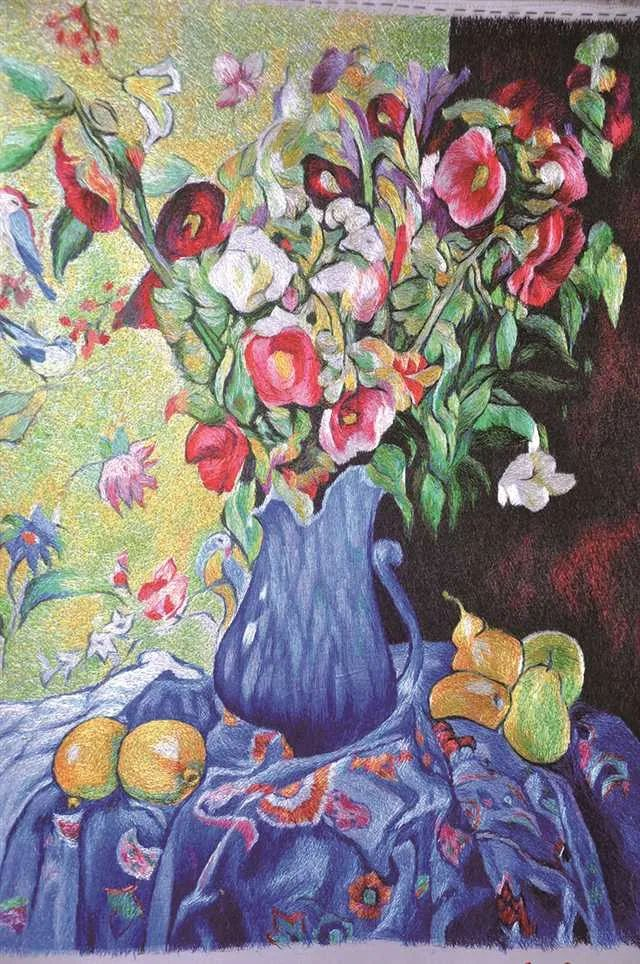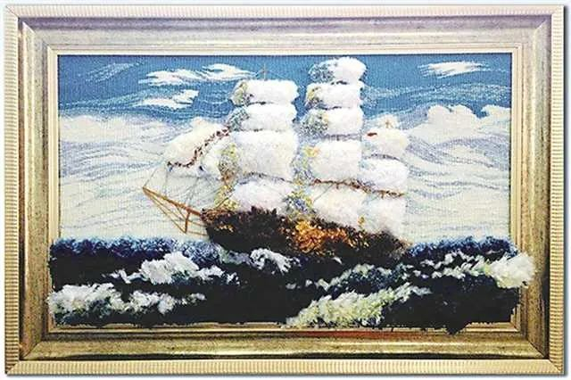 毛线编织画是一种传统手工技艺,流传甚广。它以彩色毛线为原料,将不同颜色的毛线混杂起来调色,利用手工编织,通过剪刀修剪出立体形态的艺术创作,作品不但色彩丰富,还形态各异,花鸟、山水、人物都显得栩栩如生。