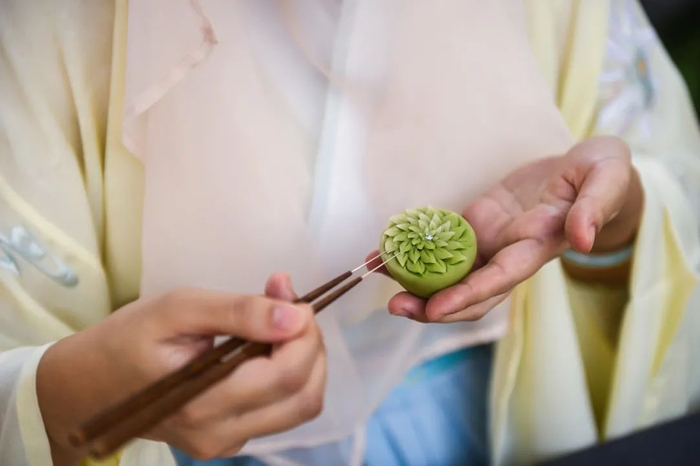除了四季美食,当天,主办方还邀请制菓大师宋蕾现场创作宋代宫廷点心——菓子。一个个精美小巧的菓子把东方美学和美食融合到极致。