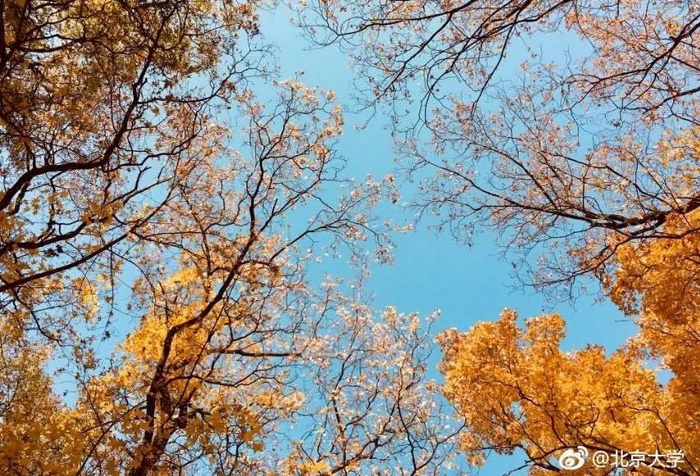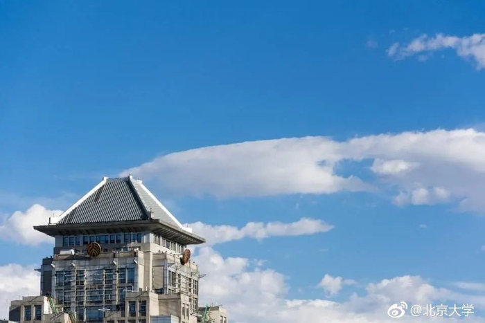 湛蓝澄澈,云意绵绵,抬头欣赏北京大学一望无际的天空。