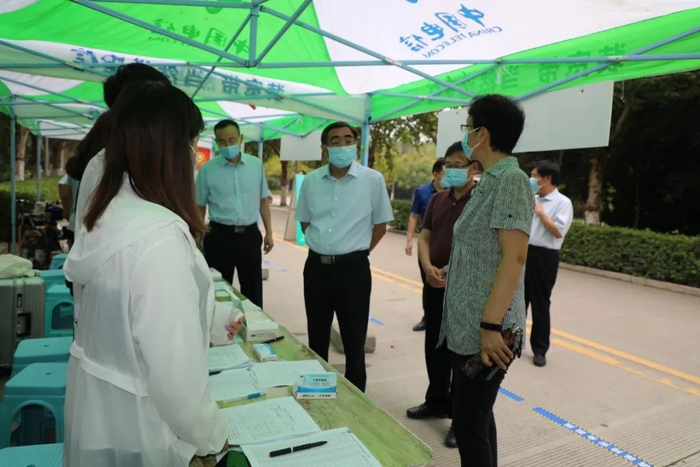 根据河南大学2020 年秋季学期开学报到工作总体安排,8月22日,我校迎来2020年秋季学期第一批返校报到的本科生,人员范围为各学院有实践、实验类课程补课安排的学生,共计3000余人。校领导宋纯鹏、张宝明、杨中华带领学校疫情防控各专班相关负责人分别前往金明校区小西门、北苑公寓、东苑公寓等报到站点,实地查看并指导学生返校报到工作,慰问返校学子和工作人员。