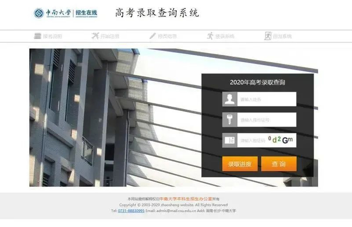http://join-zhaosheng.csu.edu.cn/gaokaochaxun2020/