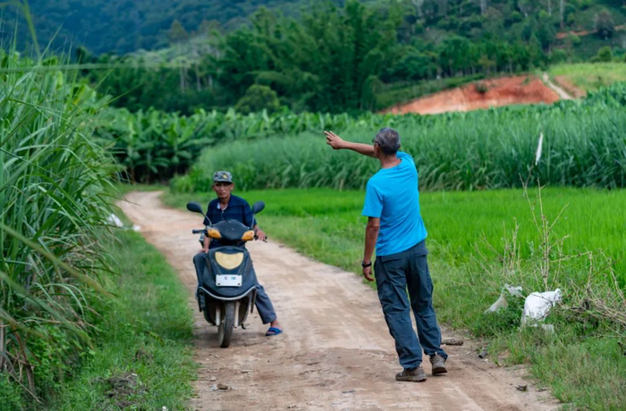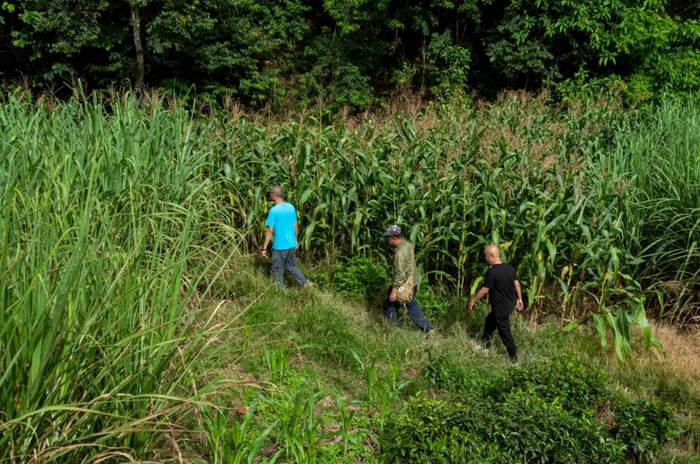 8月9日上午,离发现亚洲象活动地不远处的一个村庄,普宗信和同事们在这里做监测。陈欣波 摄