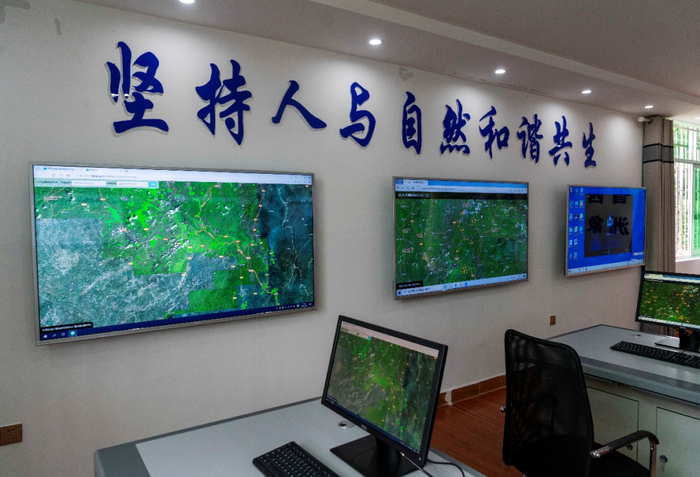 8月9日拍摄的勐海亚洲象监测预警中心机房,普宗信上传的预警信息通过这里进行发布。陈欣波 摄