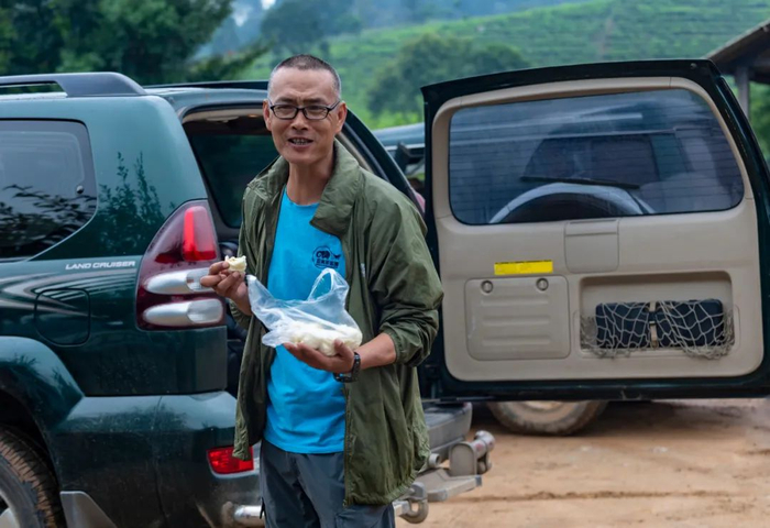 8月9日上午,在找到活动的亚洲象之后,普宗信才开始吃早餐。“如果没有找到大象,早餐都没心情吃!”普宗信说。陈欣波 摄