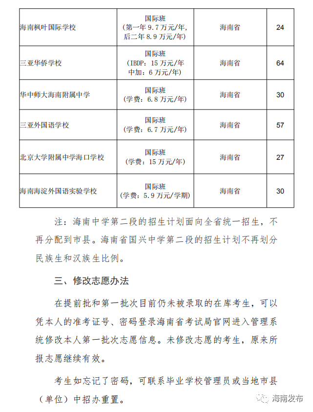 3.省一级学校部分招生计划。文昌侨中、儋州八一中学、儋州市两院中学。