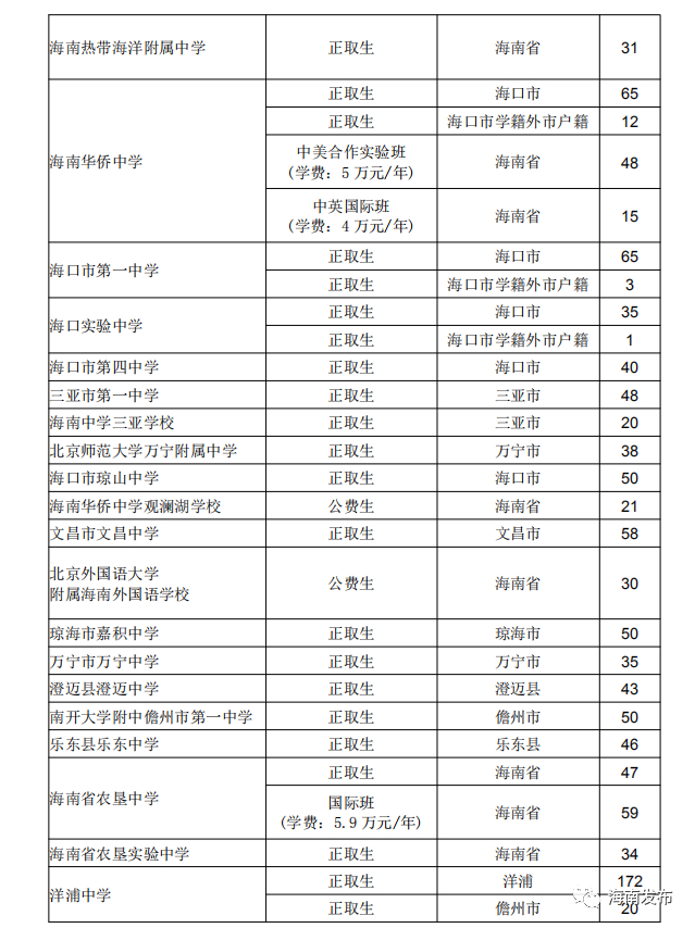 2.海南华侨中学(中美合作实验班、中英国际班以及“非海口户籍海口学籍” 的单列计划)
