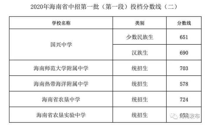 三亚市:三亚市第一中学少数民族班646分,全市统招690分;海南中学三亚学校662分。