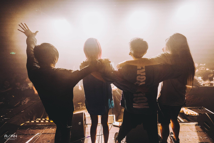 超级斩的演出现场会有一些应援动作,需要歌迷一起参与。这种现场互动方式盛行于日本,从湘南乃风的旋转毛巾,到babyMetal的卡哇伊体操,在风格型的乐队现场,这种互动的效果会更加强烈。应援动作通常靠MV和演出视频传播,超级斩没有拍过MV,演出视频也都是片段式呈现,他们的乐迷是在一次次现场演出中学会了这些互动,元帅说,乐队最近一次livehouse专场来了三百多人,有三分之二可以跟上他们的动作。这些大多是被乐队称为初代目的乐迷,酸说自己从他们身上感受到做乐队的幸运,乐迷的支持甚至让她觉得超级斩是一支养成系的重型乐队,“得知我们参加《乐夏》后,好多初代目乐迷激动到哭,他们比我们自己还高兴,觉得我们终于出人头地了”。