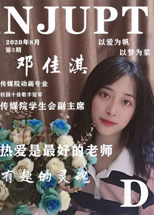在担任传媒学院学生会副主席时,邓佳淇常给人留下“气场强”的印象。但在“高冷”的标签之下,其实是拥有着热爱歌唱的“有趣灵魂”。她凭借着实力唱功在决赛中脱颖而出,夺得了2019年南邮“十佳歌手”总冠军。“我已经有过很多次登台唱歌的经历了。”邓佳淇曾多次参与传媒与艺术学院的活动演出以及2018年中国新歌声选拔等才艺比赛,积累了丰富的表演经验。