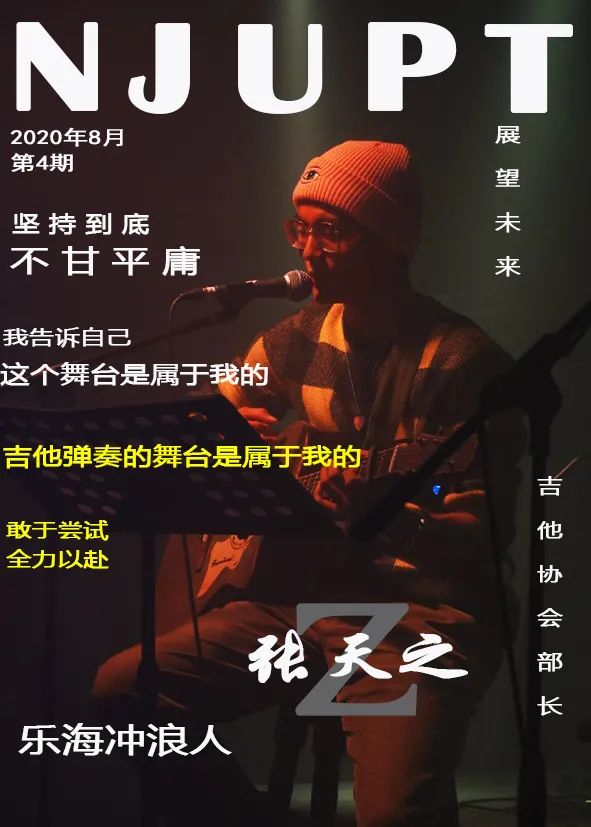 因为喜爱和大家一起弹吉他的氛围,中考结束之后,张天之开始接触吉他的学习,并一直坚持到了现在。曾任南邮吉他协会部长的张天之向我们回忆了最初学习吉他的困难:“因为吉他弹奏对手指灵活度要求很高,最开始我经常会把握不好节奏,而且练习过程中手指的酸涩疼痛也是在所难免的。” 但张天之认为,既然自己选择弹奏吉他的道路,就要坚持到底,不能甘于平庸。“初学吉他时我的弹奏水平还不是很好,但我还记得我和朋友们一起在广场上弹唱朴树的《那些花儿》,最初只是几个人围成一个小圈的自娱自乐,后来却渐渐吸引了越来越多人加入进来。即使大家都是素不相识的陌生人,但是即兴弹唱时大家的默契与结束后的相视一笑却给我留下了温馨而美好的记忆。”也正是这件事情,让张天之坚定了学好吉他的信心。从此不惧困难疼痛,相信熟能生巧:“我告诉自己,这个舞台是属于我的”。
