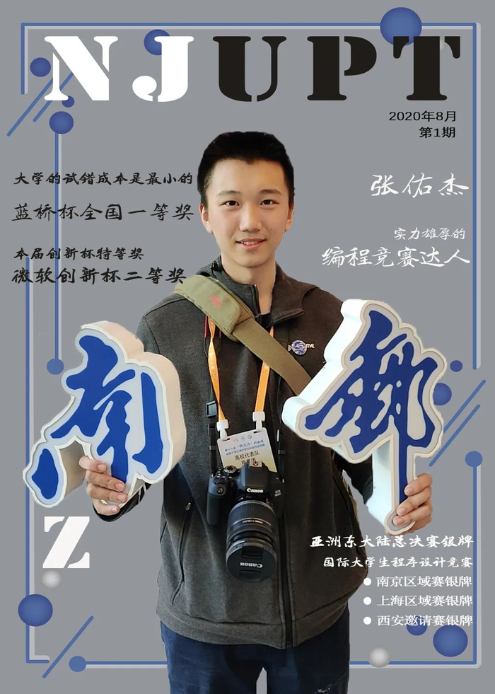 张佑杰,现任南邮大学生科协主席、计软网安院先进算法协会副会长。他从小到大都对计算机编程有着非常浓厚的兴趣:“我接触计算机编程非常早,小学计算机还能跑Quick Basic的时候我就开始了兴趣主导的学习,到高中、大学时逐渐进行系统化的学习,一直以来我都没有停止过自己在这方面的钻研。” 凭借着在计算机编程方面过人的能力,他斩获竞赛奖项无数:南邮第二十一届创新杯特等奖、微软创新杯二等奖、国际大学生程序设计竞赛西安邀请赛银牌、国际大学生程序设计竞赛南京区域赛银牌、国际大学生程序设计竞赛上海区域赛银牌、亚洲东大陆总决赛银牌、蓝桥杯全国一等奖、江苏省大学生程序设计竞赛特等奖……过人的能力和傲人的成绩归根到底是来源于长久以来他对自己热爱的东西的坚持。