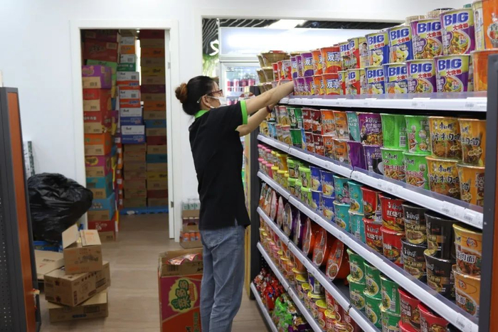 奉贤校区的商业街已有部分商家开放,包括教育超市、理发店、水果店等,其他商铺开放情况会根据返校情况进一步安排调整。商铺内均配置免洗消毒洗手液,建议同学们佩戴口罩有序排队结算。教育超市内供货充足,并专门为师生提供一档防护物品专区,大家可以根据自身实际情况随时进行“补货”。