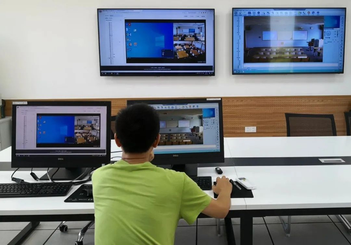 学校升级改造了两校区269间公共多媒体教室与现代柔性智慧教室的教学设施,系统检查了123间常规多媒体教室的光纤线路、视频监控等设备状况,安排专人多次对2间沉浸式远程直播互动教室进行维护,对智慧教室岗位人员进行多场业务培训等。