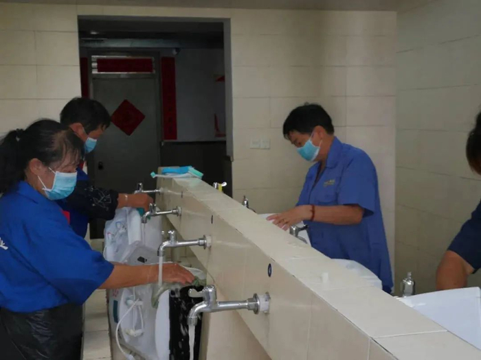 此外,对两校区的8台水泵进行保养,对221台开水器和45个直水箱进行了清洗和消毒,对两校区的自助洗衣机、开水器等公共服务设施进行严格消毒,并维修了奉贤校区公共浴室的进水阀以及教学楼、宿舍小浴室、校园道路等处的照明灯。