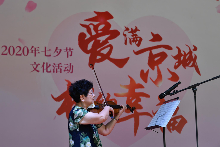 记者在活动现场看到,本次文化活动包含文艺节目演出、七夕传统非遗项目展示及巧娘分享、有奖知识问答、科普垃圾分类知识、互动留影区等环节。非遗项目展示有京派剪纸、彩蛋绘制、北京绢人、北京雕漆、传拓技艺、彩砂工艺、彩塑京剧脸谱、北京内画鼻烟壶、裕氏草编等展台与游客和市民互动交流。