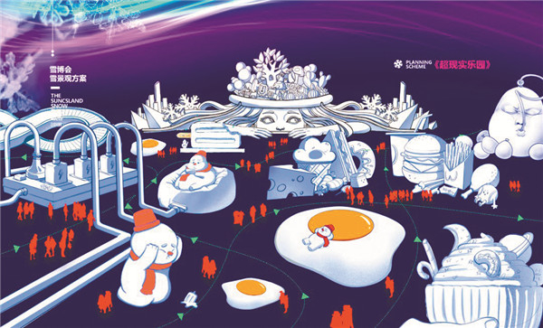 图为雪博会“超现实乐园”景区设计方案(初步)效果图。