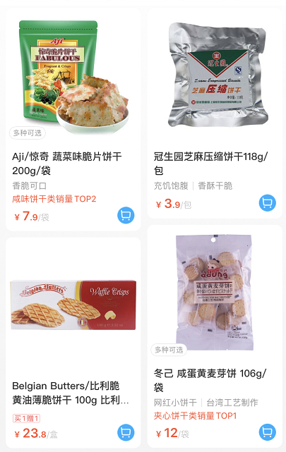 曲奇饼、消化饼、苏打饼干、夹心饼干……打开盒马APP搜索饼干,了解更多产品细节。