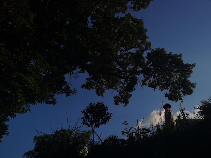 大约5分钟的路程后,到了一棵三人合抱的古树前,这个古树有数十米高,在山脊另一侧的寨子中心,就能看到古树的顶端。