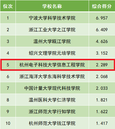 在浙江省独立学院国际化总体水平排行中,杭州电子科技大学信息工程学院位列第五,排名较往年有大幅度提升,且为首次入围该排行榜。