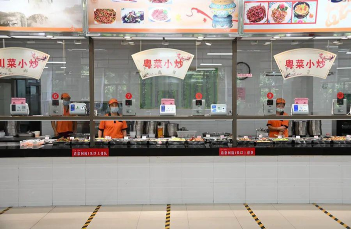 现阶段食堂统一采用的是分餐制的供应模式。建议无课或早下课的学生,提早前往食堂打饭,错峰用餐,避免扎堆聚集。