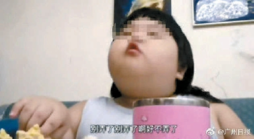 时下不少家长都热衷以短视频、直播等形式,“分享”孩子成长变化的点滴。然而,佩琪父母不断投喂着烤肉、烤串、烤肠等一堆高热量食物,并拿孩子超夸张的体重作为噱头看点——这不是拍下孩子可爱的成长片段,这是拿食物施虐制造苦难。