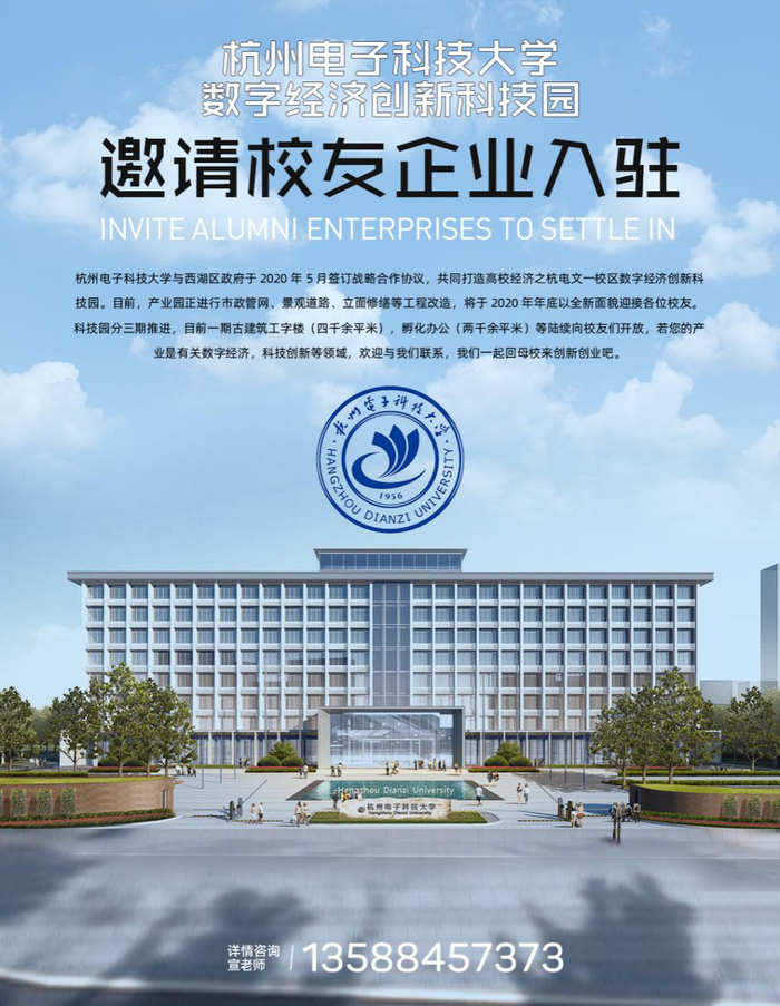 筹建中的杭电数字经济创新科技园,将活动场地与富有历史感的校园建筑交织融合,形成杭州主城区极为稀缺的生态、生活和创业空间。在产业规划上将发挥我校电子信息等数字经济学科优势,依托各相关学院的科研成果转化平台,利用好庞大的优秀校友资源,将扎根数字经济产业的领军代表请回到母校,共同参与学校发展建设。园区将重点展示云计算与大数据、物联网与信息软件、电子商务与人工智能、创新设计与5G产业等数字化产业特色。