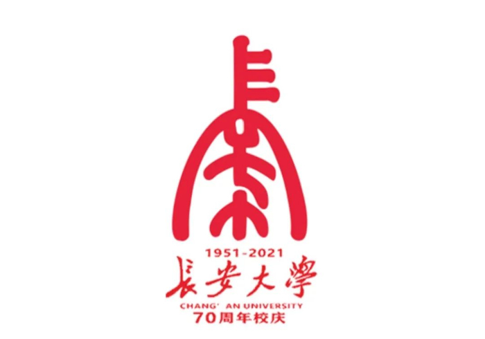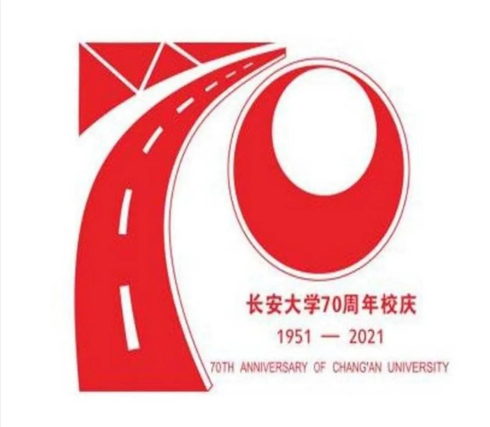 3、长安大学70周年校庆;1951 --- 2021 ;英文(70TH ANNIVERSARY OF CHANG’AN UNIVERSITY)分三行书写,意为三校合一。