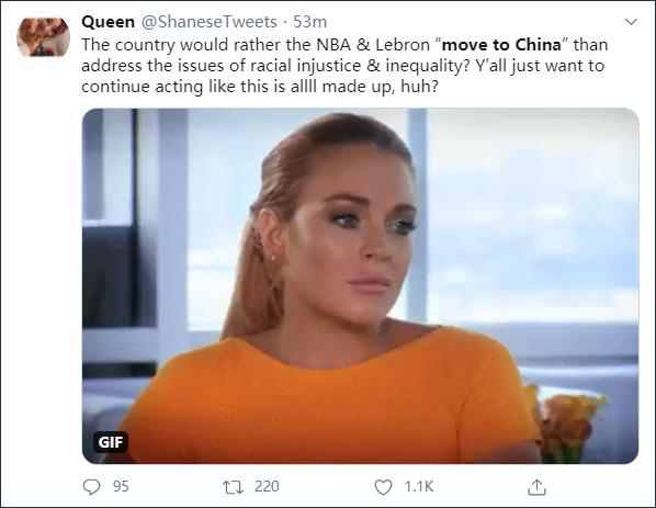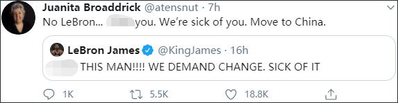 有人“一针见血”地指出,“这个国家宁愿让NBA和詹姆斯‘搬去中国’,也不去解决实际的种族问题?你们(特朗普支持者)还要继续装作这一切不是真的吗?”