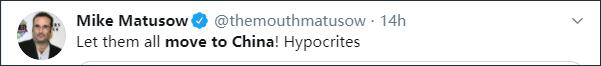 “让他们都搬到中国去!这群伪君子。”