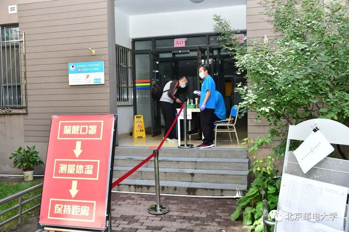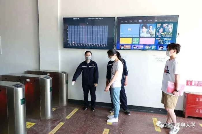 进入公寓楼时需使用人脸识别系统进行体温测量、身份识别,并在登记表签字、手机扫描二维码后返回宿舍住宿。