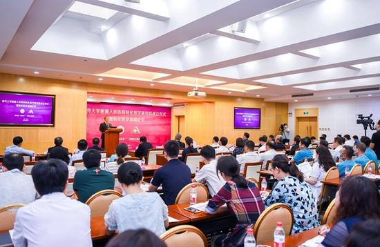 南开大学校长、中国工程院院士曹雪涛,中国工程院院士、中国工程院原副院长、空军军医大学西京消化病医院院长樊代明,天津市人民医院党委书记、院长、南开大学附属人民医院转化医学研究院院长朱思伟,南开大学副校长、南开大学附属人民医院转化医学研究院院长王磊出席在天津市人民医院举行的成立仪式并为研究院揭牌。