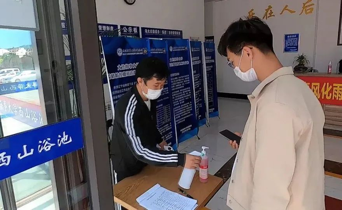 4、为了保证同学们的身体安全,请同学们进入浴池前,按照浴池防疫规定及服务人员的引导,配合做好登记、扫码、消毒、浴位浴箱对号等防疫措施。为方便同学们,浴池现场安排了专门服务咨询人员、也配备了专用垃圾箱、紧急隔离房等设施。