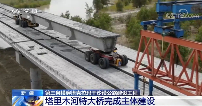 8月26日下午,在新疆尉犁至且末沙漠公路控制性工程——塔里木河特大桥的施工现场,随着最后一片箱梁落在桥体上,塔里木河特大桥的主体工程顺利完成,这也标志着新疆第三条沙漠公路——尉犁至且末沙漠公路成功跨越塔里木河。