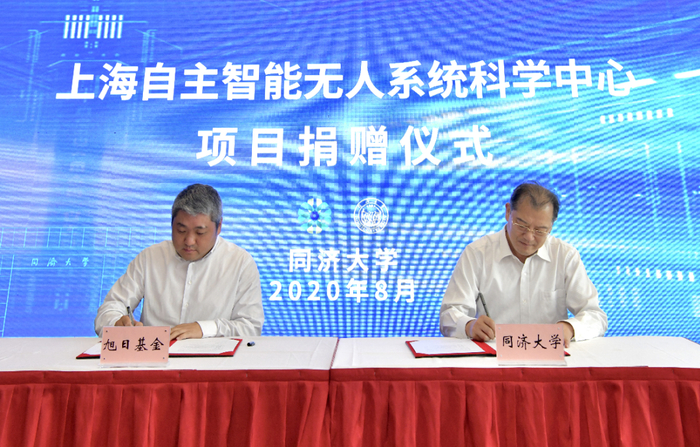 会上,同济大学校友孙益功、王虹斌、蒋忠平等校友捐赠人民币一亿元,支持以同济大学为依托的上海自主智能无人系统科学中心的建设与发展。同济大学副校长雷星晖和同济大学校友代表孙益功代表双方共同签署捐赠意向书。