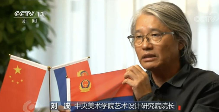 中央美术学院艺术设计研究院院长刘波说:“这个警徽的位置,跟党旗、国旗的位置是一样的,中国红的运用特别强调了它的红色使命,对党忠诚、服务人民。这个蓝色分别代表中国200多万人民警察对于维护祖国,保家卫国所起到的作用,所以我们把它放在旗帜的最下方。”