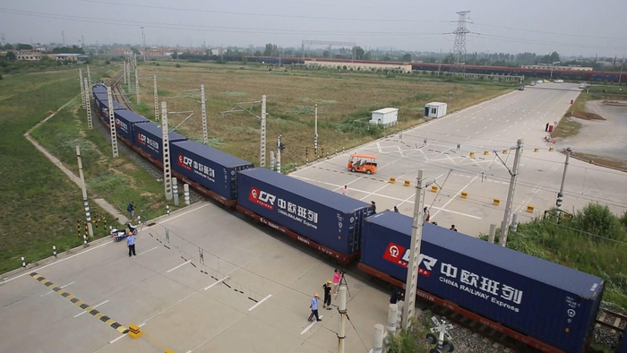 同日,一辆载满电子产品、日用百货和医用口罩等货物的列车从四川成都出发,驶向荷兰蒂尔堡,这也是从成都始发的第6000列中欧班列。