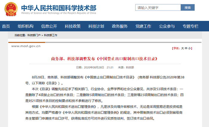 然而,8月28日,商务部、科技部发布调整之后的《中国禁止出口限制出口技术目录》(简称《目录》)。调整之后的《目录》第二项限制出口部分第(十五)计算机服务业增加了“基于数据分析的个性化信息推送服务技术”。那么,《目录》的调整是否增加了字节跳动出售TikTok 在北美、澳大利亚和新西兰业务的不确定性?是的!
