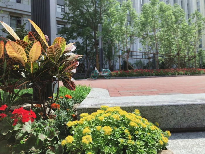 南校区经过一番改造之后,变得如同花园一样美丽。优美的环境也会让我们的宿舍生活更加美好。在寝室楼下面的绿地上也点缀着许多鲜花,真是让人赏心悦目!