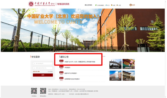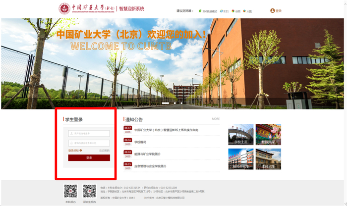网址 http∶//zhyx.cumtb.edu.cn,账号为考生号,密码为身份证号后六位。