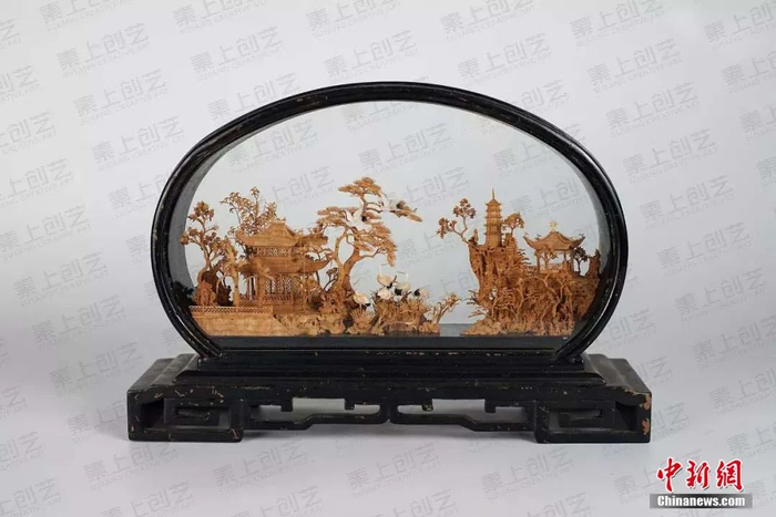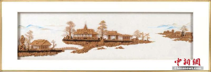 软木画中式建筑。中新社记者吕明摄